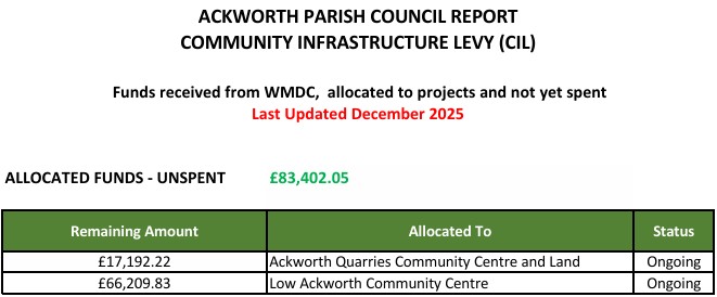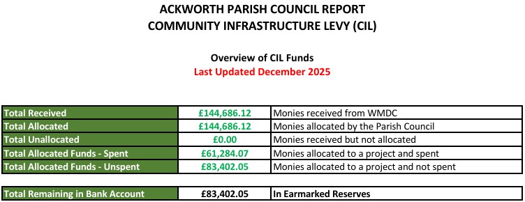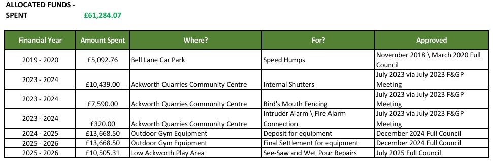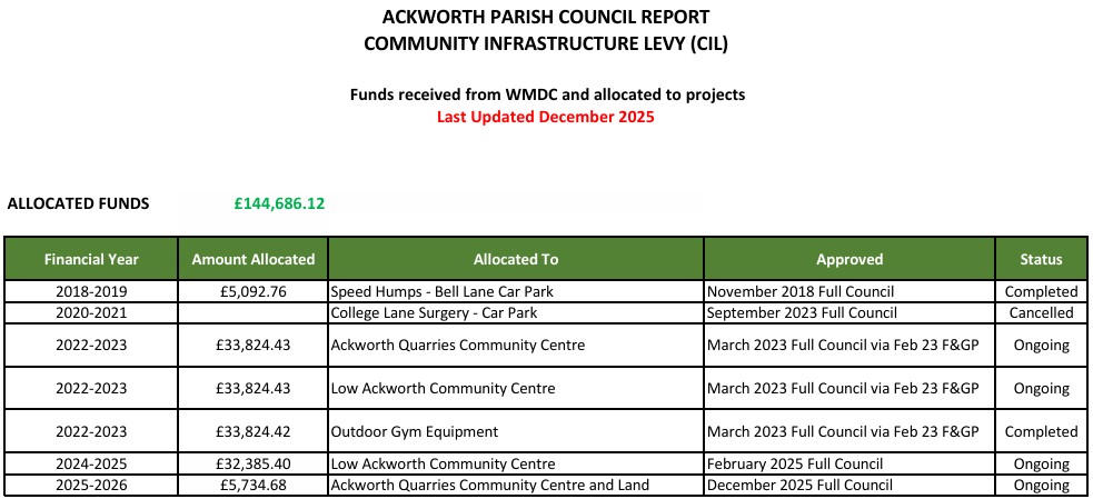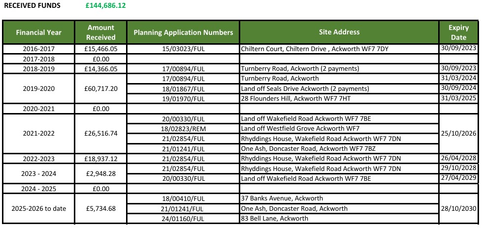 To December 2025, Ackworth Parish Council has received £144,686.12.