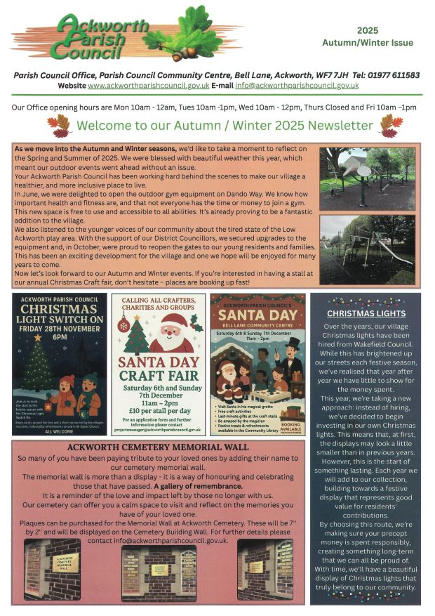 The Parish Council publishes a bi-annual newsletter which is distributed to all residents in the village. The aim of the newsletter is to keep residents informed of the work of the Parish Council.